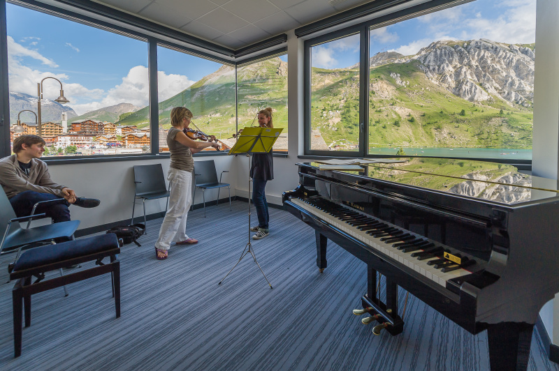 ピアノおよびハープ 練習楽器を無料でご使用いただけます。一日あたり少なくとも3時間は練習ができます。